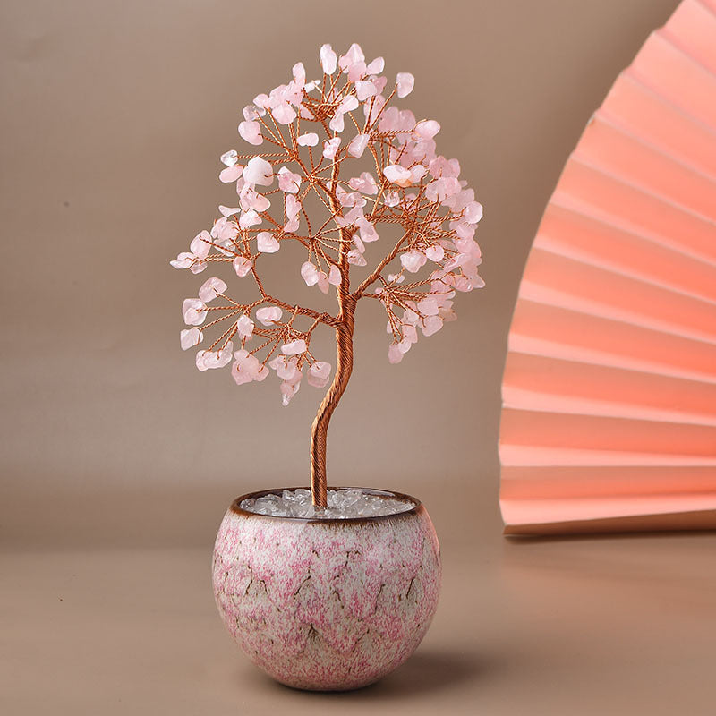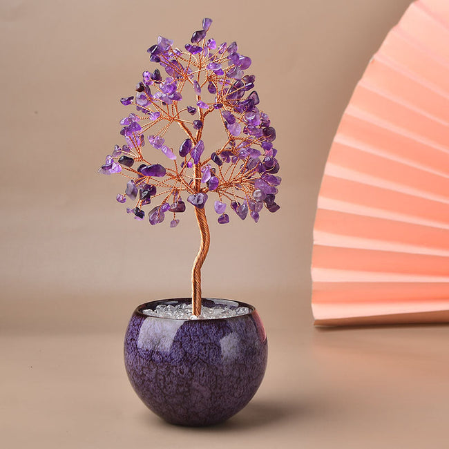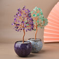 Transform your space with the serene beauty of these Crystal Tree Ornaments, delicately handcrafted to exude elegance and positive energy. With vibrant gemstone leaves representing wealth, health, and balance, these trees are a perfect blend of artistry and spiritual symbolism. Each ceramic pot is uniquely designed to complement the natural beauty of the crystals, making it a stylish and meaningful addition to any home or office.