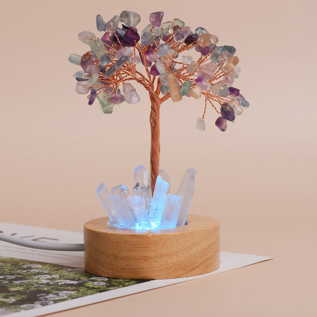 The Fortune Crystal Tree is adorned with vibrant crystal stones symbolizing prosperity, positive energy, and harmony. It is designed to invite abundance and good luck into your home or office.USB-Powered Multicolor LED Base: